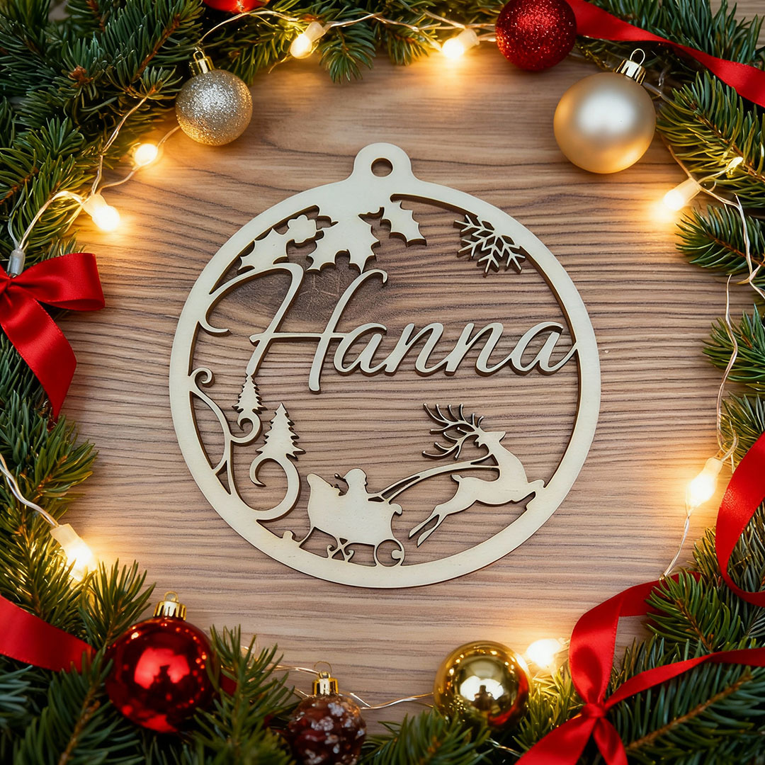 Lézervágott karácsonyfadísz 3mm vastag rétegelt lemezből. Igény szerint festheted, lakkozhatod. A termék az általad megadott névvel készül el. A szerkeszthetőség érdekében kérlek kerüld a hosszú, összetett és többszörösen becézett neveket!