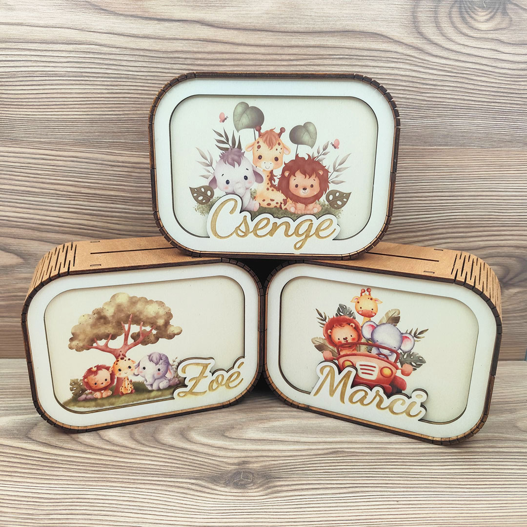 Egyedi persely 3 mm vastag nyár rétegelt lemezből. Egyedi ajándékként vagy feldobni a gyűjtögetés hangulatát.