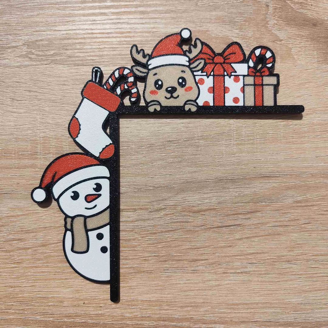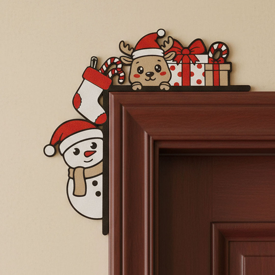 Egy aranyos ajtódísz, amit az ajtókeret sarkára tudsz támasztani, így emelve a karácsonyi hangulatot. Biztosítéknak 1-2 darabka kétoldalas ragasztó használata ajánlott, főleg, ha egyenetlen az ajtókeret.